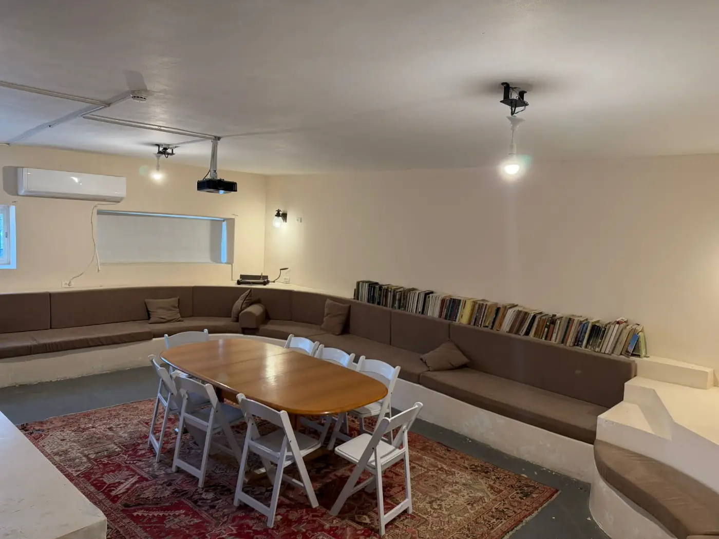 מתאים להתכנסויות יומיות חמימות מסוגים שונים כסדנאות, הרצאות, מופעים אינטימיים, ימי צוות, ימי חברה ועוד.