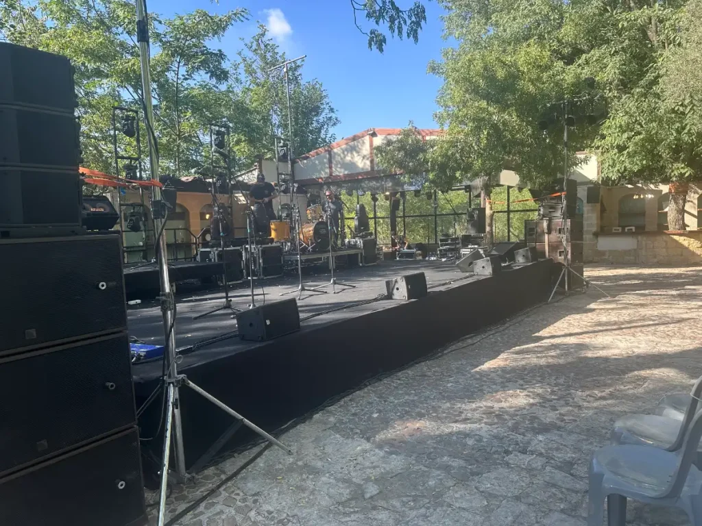 הרחבה מצויידת בבמת אבן להופעות קטנות, מזנוני הגשה מעץ גושני, חיבורי חשמל וברזי מים.