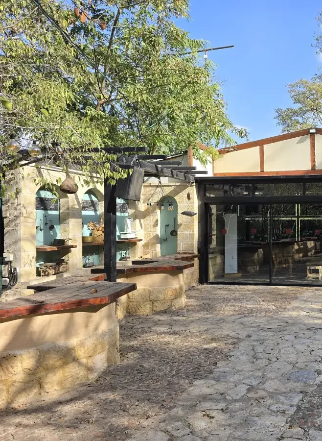 הרחבה מוקפת מזנוני הגשה עשויים עץ גושני, בצד הרחבה 10 תאי שירותים נעימים, חניה מרווחת, מחסנים ומטבח הגשה. הרחבה מונגשת ומזמינה אנשים עם ובלי מוגבלויות.
